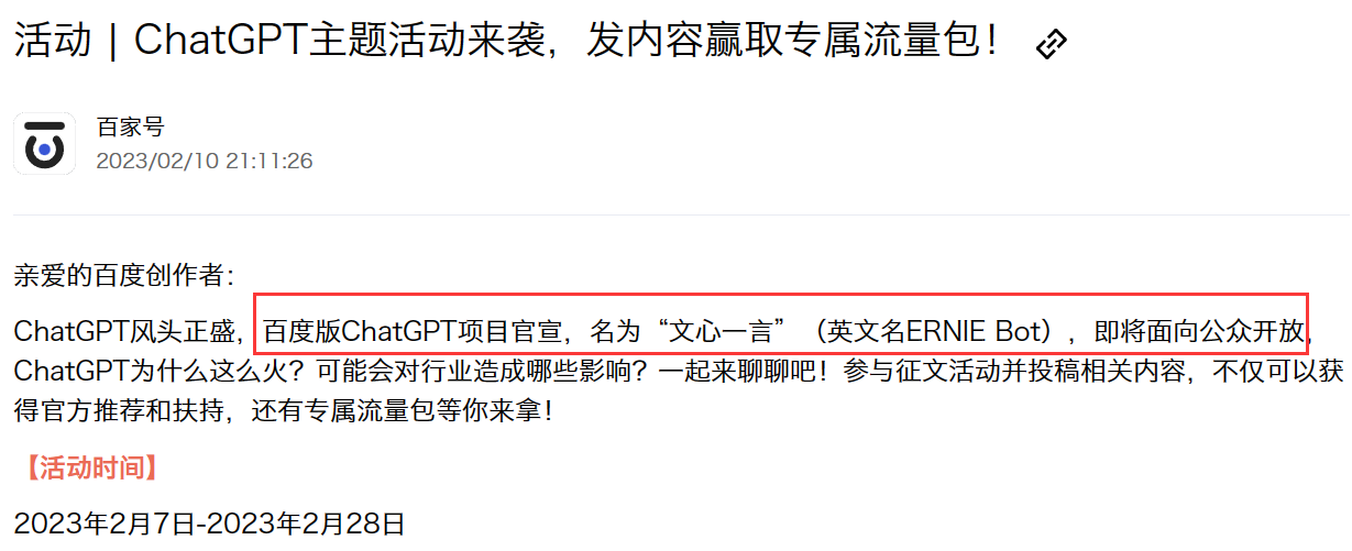 百度版ChatGPT項目“文心一言”即將面世